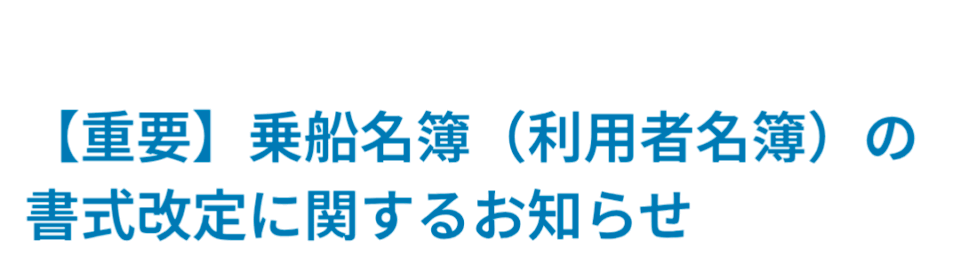 【重要】乗船名簿(利用者名簿)の書式改定に関するお知らせ