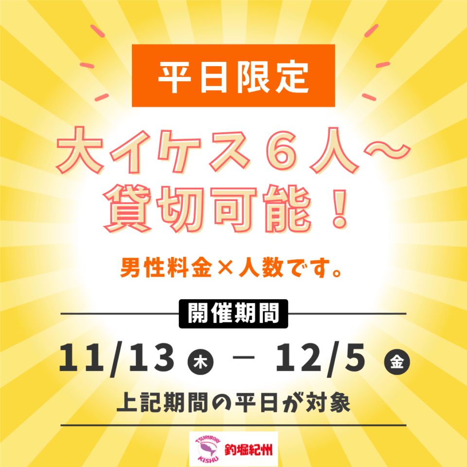 🎣大チャンス到来!12月5日までの平日限定特別企画!