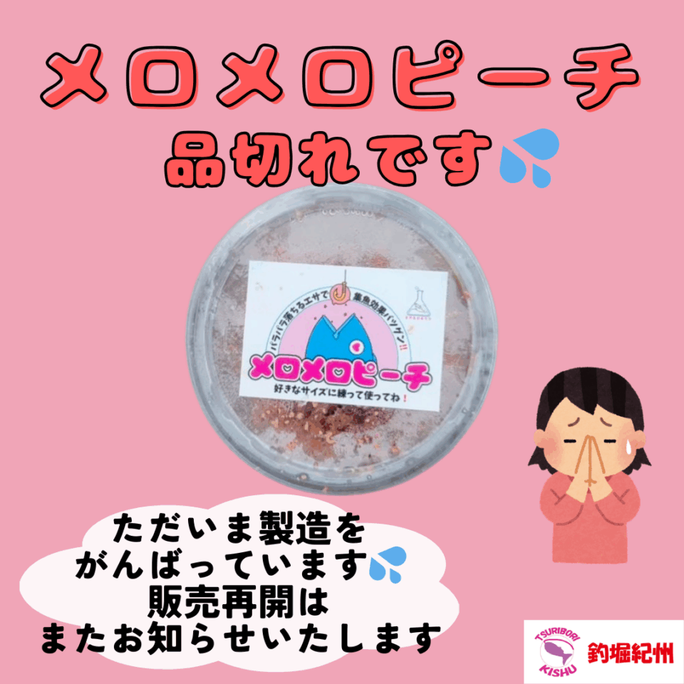 釣堀紀州で販売している 『メロメロピーチ』 本日、品切れになりました💦 ご迷惑をおかけし大変申し訳ありません。