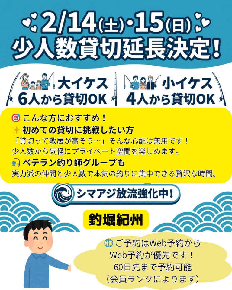 2026年2月14日(土)、15日(日)も少人数貸切を実施します!🎊