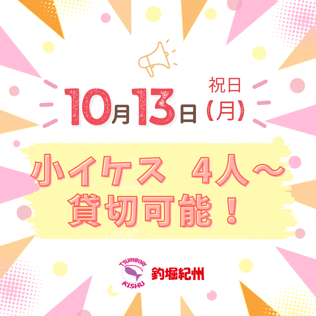 10月13日(月・祝)は小イケス少人数貸切可能👏✨