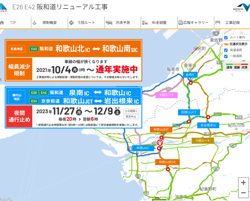 詳しくはNEXCO西日本の阪和道リニューアル工事のサイトをご覧ください。