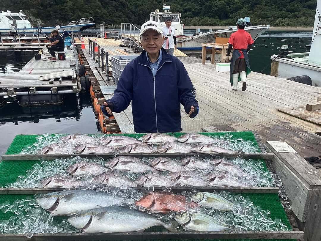 🍀 10月19日 釣堀紀州🍀 水温 下:25.6℃ 上:25.6℃ 今日の釣果写真です🤩 ①今中さん マダイ19 シラサエビ/6ヒロ シマアジ2 シラサエビ/6ヒロ ブリ
