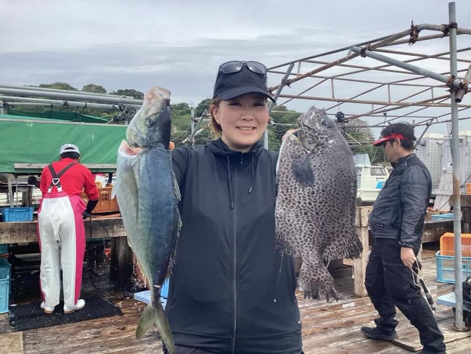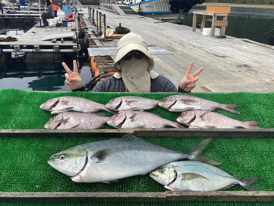 シマアジも浅めのタナで釣れているイケスも多く、